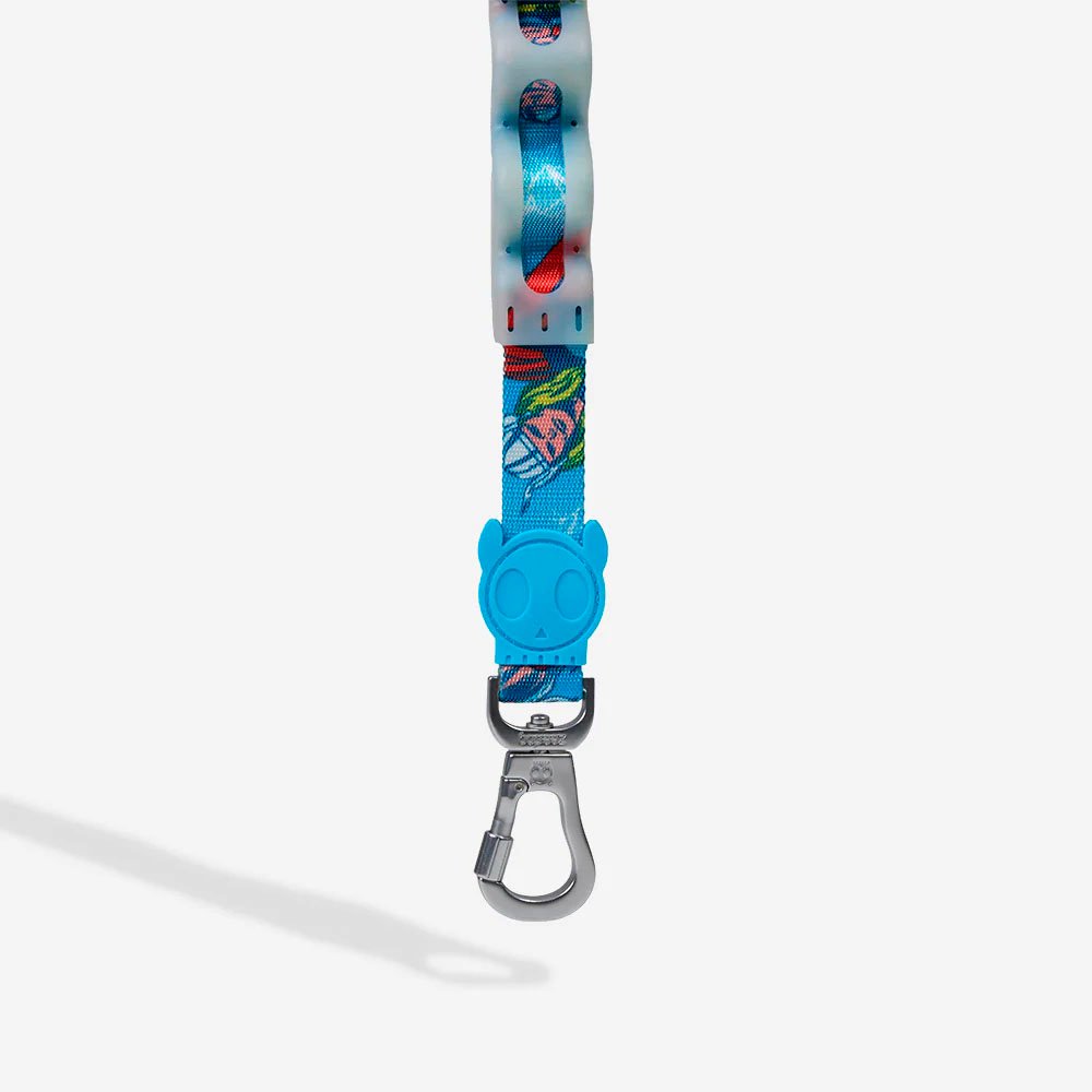 El asa de la correa está acolchada con suave neopreno, lo que la hace muy cómoda al tacto, incluso durante paseos largos. Además, su gancho Super Hook™ gira 360 grados y cuenta con un bloqueo de seguridad de rosca para mayor protección. El distintivo logo de goma en forma de calavera no solo añade estilo, sino que también protege las costuras, garantizando durabilidad.