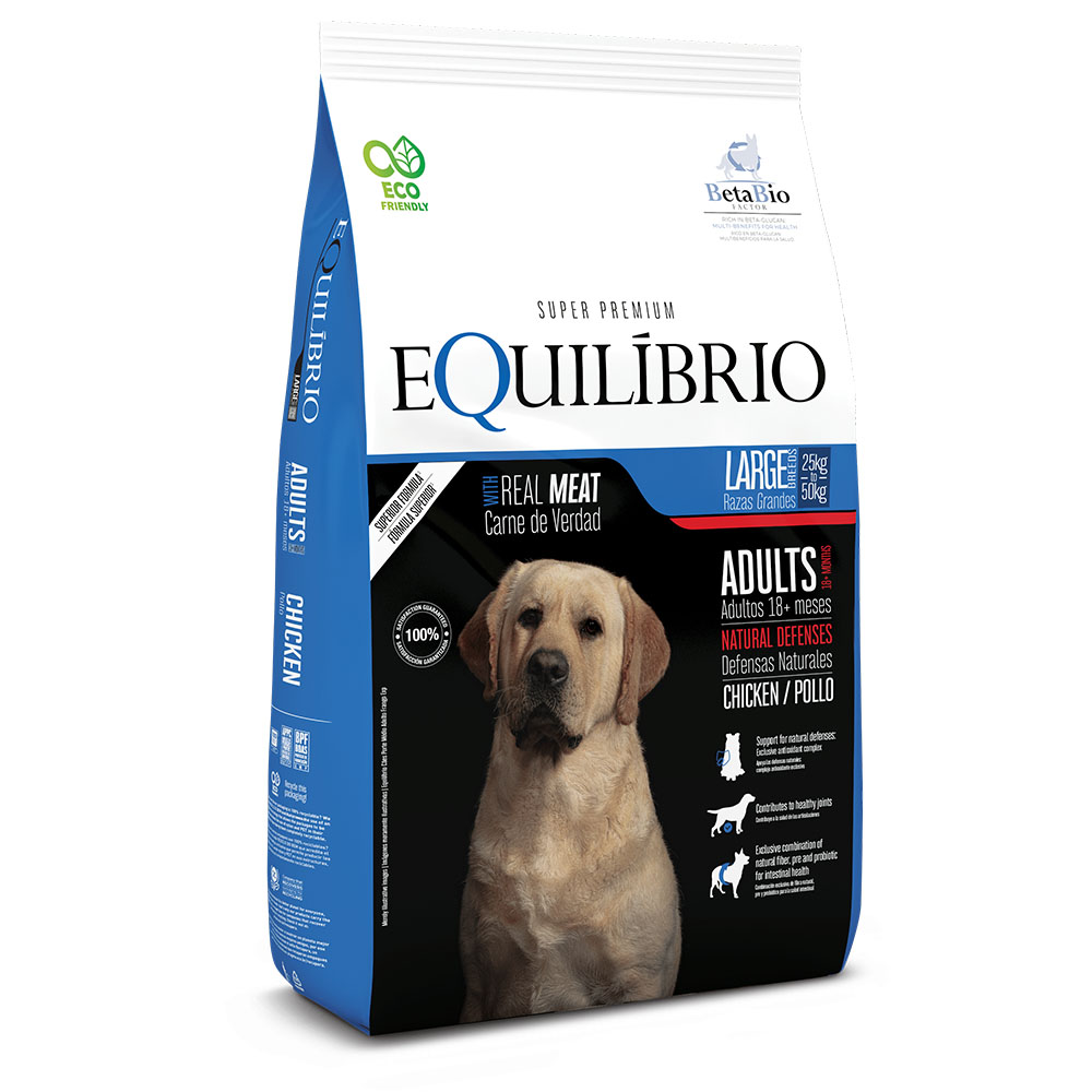 Equilibrio Adulto Raza Grande es un alimento balanceado de alta calidad, desarrollado especialmente para cubrir las necesidades nutricionales de los perros adultos de razas grandes, que requieren un aporte energético y estructural adaptado a su tamaño y peso corporal.