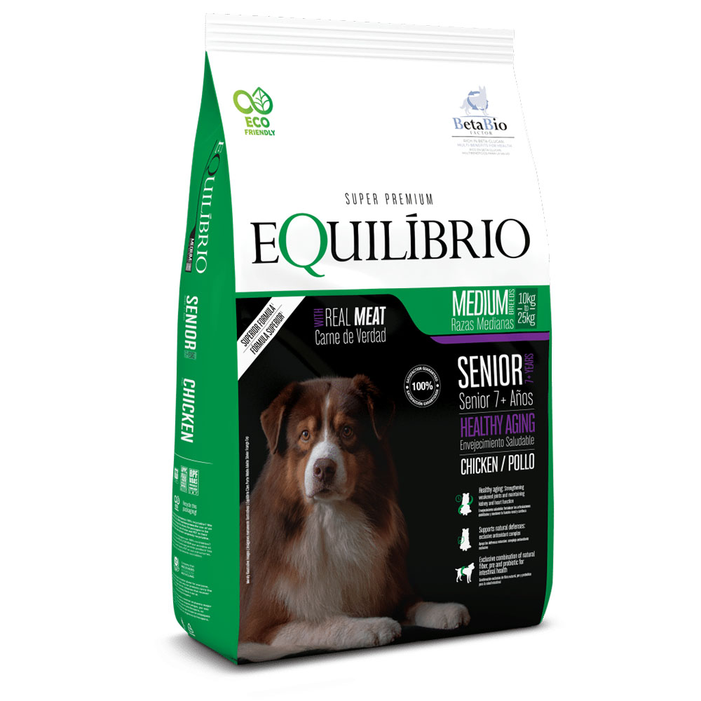 Equilibrio Mature es un alimento balanceado de alta calidad, desarrollado especialmente para perros adultos mayores, que requieren una nutrición adaptada a los cambios propios de la edad.