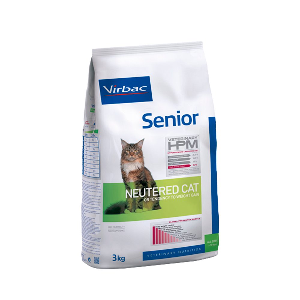 HPM Virbac Senior para Gatos Esterilizados es un alimento seco formulado específicamente para gatos mayores esterilizados, ayudando a mantener el peso ideal, proteger la salud renal y promover la vitalidad general.