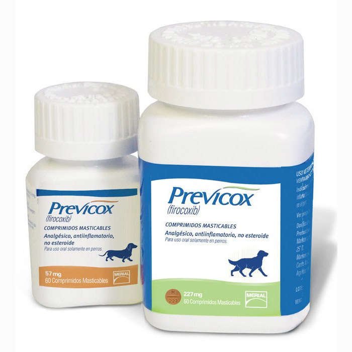 Previcox del Laboratorio Merial antiinflamatorio no esteroide, contiene el principio activo Firocoxib, que pertenece a un grupo de medicamentos con efecto antiinflamatorio. Previcox se presenta en comprimidos masticables para perros (57 mg y 227 mg).
