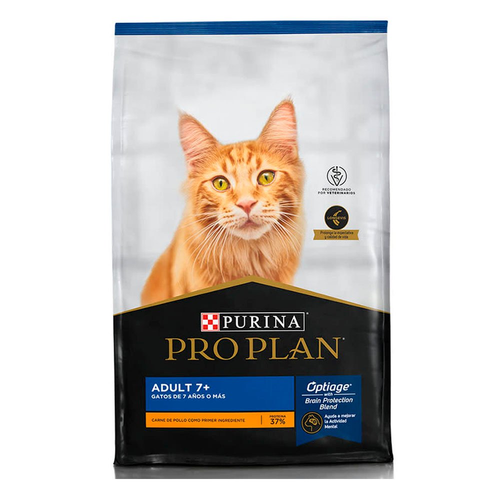 - Tecnología Optiage with Brain Protection Blend, exclusiva combinación de aminoácidos, antioxidantes naturales, vitaminas del complejo B y omega 3 y 6, que ayudan a proteger y mantener la actividad cerebral de los gatos mayores de 7 años.